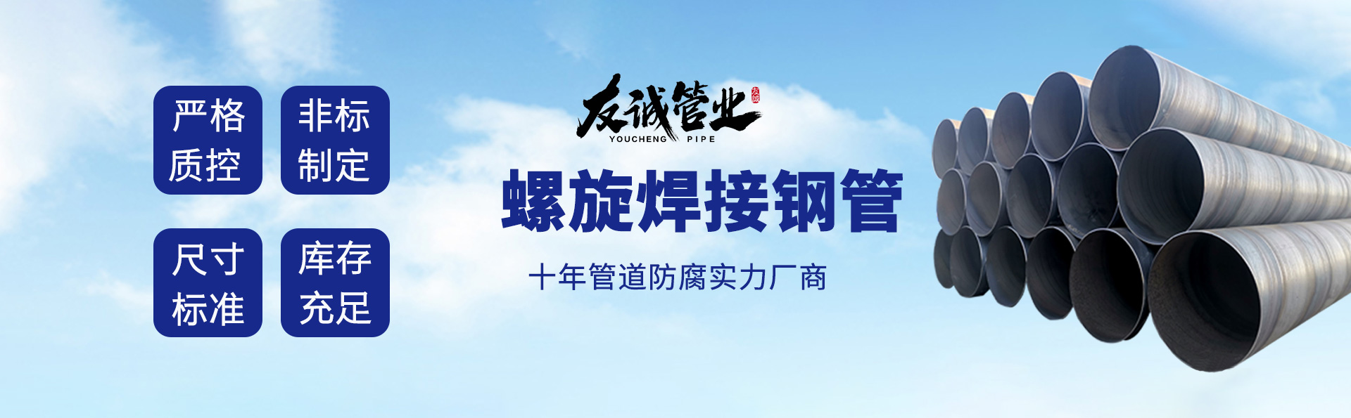 滄州友誠(chéng)管業(yè)有限公司是一家專業(yè)從事生產(chǎn)防腐涂塑管道及管件于一體的大型企業(yè)。公司注冊(cè)資金8600萬(wàn)元,位于中國(guó)管道生產(chǎn)基地—河北鹽山縣,近靠京滬高速、榮烏高速、黃石高速30公里,高鐵滄州西站40公里,天津國(guó)際機(jī)場(chǎng)、濟(jì)南遙墻機(jī)場(chǎng)150公里,為客戶來訪及業(yè)務(wù)發(fā)展提供了便利的交通條件。 鋼管系列:螺旋鋼管、無縫鋼管、ERW直縫焊管、JCOE埋弧焊直縫鋼管、熱鍍鋅鋼管。 涂塑系列:內(nèi)外涂塑鋼管、涂塑復(fù)合鋼…… 了解更多